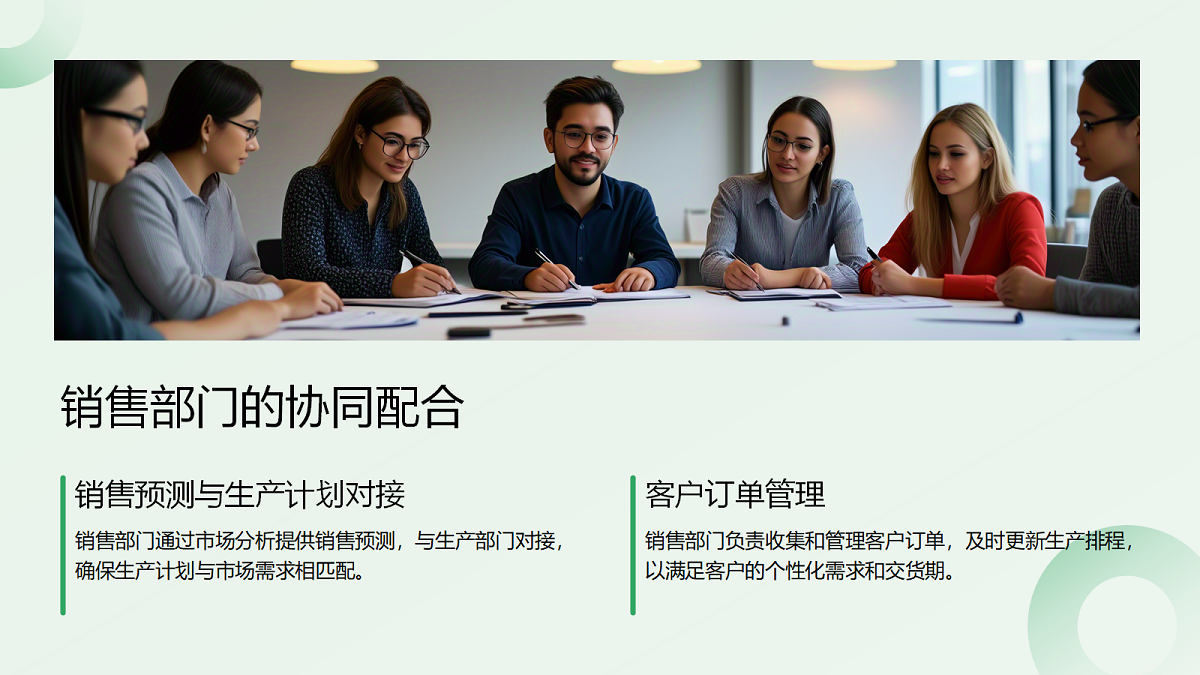 La mise en œuvre d'une planification de production équilibrée est indissociable de la coopération collaborative de départements tels que les ventes, l'ingénierie, la gestion de la chaîne d'approvisionnement, les achats, la production et la logistique. Cette collaboration est la logique sous-jacente de la réponse rapide, et le cœur de la réponse rapide réside dans la remontée d’informations et la communication, ainsi que dans l’amélioration continue et en profondeur du cycle PDCA (Plan-Do-Check-Act).