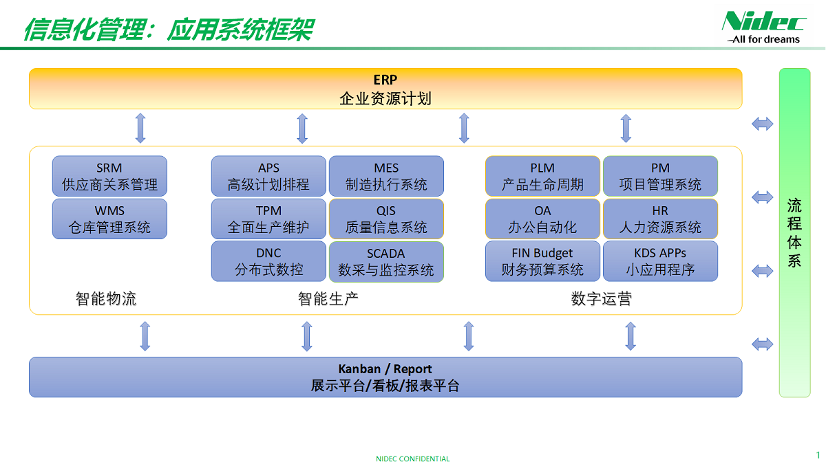 Nidec Elevator Motors a développé de manière indépendante des systèmes tels que SRM (Supplier Relationship Management), MES (Manufacturing Execution System), APS (Advanced Planning and Scheduling), WMS (Warehouse Management System) et TPM (Total Productive Maintenance). Il construit l'ensemble du système de production intelligent grâce à l'automatisation, la numérisation, la modélisation, la visualisation, l'intégration et l'intelligence, permettant la réalisation d'une planification de production équilibrée et d'une fabrication intelligente et flexible, et jetant une base solide pour la réalisation future d'une « usine phare ».