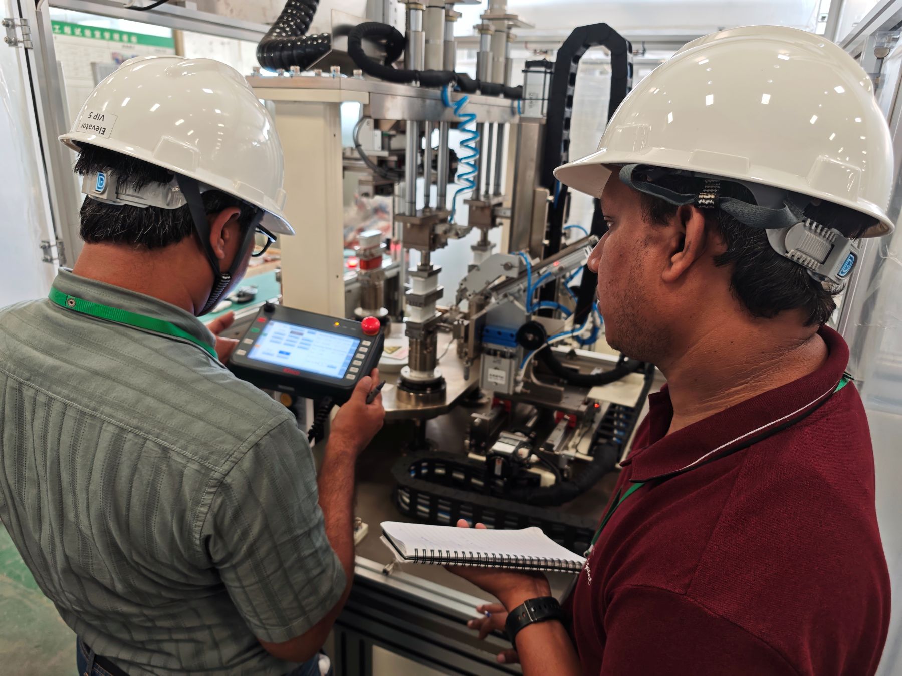 Dans l'atelier de production de notre société, l'équipe indienne a observé de près la chaîne de production de la machine de traction. Du traitement des composants de base à l'assemblage et au débogage de l'ensemble de la machine, les points clés de la gestion de la qualité dans chaque maillon ont suscité des discussions animées. Les ingénieurs de notre société se sont concentrés sur l'introduction d'une technologie de traitement de haute précision et de mesures d'assurance qualité dans le processus d'assemblage automatisé. Les collègues indiens hochaient fréquemment la tête et partageaient leur expérience pratique en matière de contrôle qualité lors d'une production localisée.